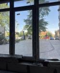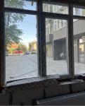 Первый этаж, 53 кв.м., три фасадных окна, прямо напротив входа во двор, отлично просматриваются с дороги.