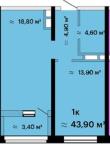 Кухня-столовая 19кв.м. с выходом на лоджию 4 кв.м. Комната 14 кв. Просторный санузел.