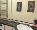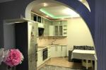 В квартире улучшенная планировка. Три отдельных комнаты, большая кухня - гостиная, просторный холл, раздельный санузел. В кухне встроенная мебель с техникой (духовка, варочная поверхность, вытяжка, микроволновка, холодильник, телевизор). Комнаты полностью оборудованы мебелью, установлено два кондиционера. В ванной комнате угловая ванная, стиральная машинка. В санузле бойлер. В холле два шкафа.