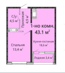 Кухня-гостиная 18,6м.кв. с выходом на лоджию. Спальня 13,4м.кв.