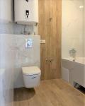 На первом этаже находится полностью оборудованный санузел с дорогой сантехникой. Большая кухня-гостиная с выходом на остекленный балкон. На балконе и в санузле теплые полы.