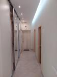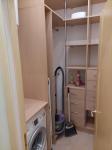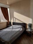 Квартира с качественным евроремонтом включает кухню с выделенной зоной гостиной, отдельную уютную спальню, а также удобное подсобное помещение со стиральной машиной и полками.