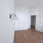 Преимущества этого жилища включают индивидуальное газовое отопление, установленные счетчики, просторную гардеробную, а также встроенную мебель воздушного белого цвета в сочетании с натуральным деревом, придавая интерьеру особый шарм.