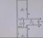 Квартира двухсторонняя, общая площадь -58 кв.м.площадь кухни-19 кв.м., комната 22 кв.м.