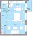 Общая площадь 52,5 кв метра, раздельная планировка.