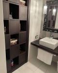 2 спальні, кухня-студія, кабінет, 2 санвузли і 1 гардеробна кімната.