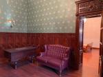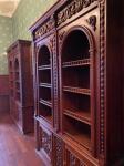 Все двери, кабинет, холл и ставни на окнах деревянные, резные, ручной работы. На полу паркет из красного дерева.