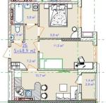 Планировка квартиры продуманная , две комнаты и кухня 14 м .