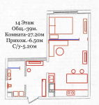 Квартира находится на 14 этаже, что открывает великолепный вид на море и придает уникальный шарм этому предложению.