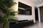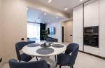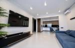 По всей квартире испанская плитка. Дорогие крашеные с алюминиевым молдингом межкомнатные двери. Мебель на заказ, огромные шкафы купе. Два телевизора 75" и 55", мультимедиа, скоростной Wi-Fi, проводка LAN, есть также рабочий стол на лоджии.