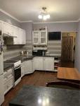 Квартира с евроремонтом делали все для себя, модной стеклянной кухней, техника, духовой шкаф ,посудомойка, стиральная машина, индукционная плита Siemens все скрыто и стильно удобный диван в комнате, большой холодильник.