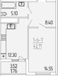 63 жемчужина. Сдача - 2024 г. В продаже 1-ком квартира - 42.21 кв.м . Жилой комплекс KADORR CITY, 63 Жемчужина на улице Краснова 3.