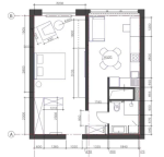 Гостиная (вместо кресла можно поставить двуспальную кровать и отделить эту зону стеклянной перегородкой).