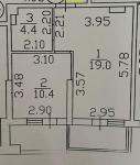 Предлагается 1-комнатная квартира площадью 38,8 м², расположенная на 12 этаже (секция 2-7).