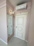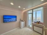 В квартире просторный зеркальный холл, две спальни, кухня-гостиная 18 кв.м, два санузла (ванная и душевая), гардеробная, балкон утеплен и оборудован под прачечную.