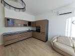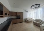 Встроенная техника: индукционная плита, духовой шкаф, посудомоечная машина, холодильник, кондиционеры Mitsubishi Electric.