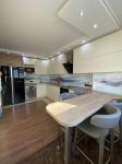 Кухня 14 м кв., оборудована всей необходимой мебелью и техникой. Установлена посудомоечная машина.