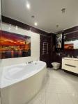 Большой совмещенный санузел с ванной и душевой кабиной.