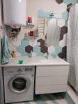 Выполнен современный дизайн ремонт из материалов высокого качества. Полная комплектация всей необходимой мебелью и техникой ведущих брендов. Плита газовая ,установлен счётчик на газ. Окна заменены на высококачественные. Квартира обесшумлена,что дарит Вам тишину и спокойствие. Лоджия раскрыта,на ней отлично организована рабочая зона. Потолки комбинированные - натяжные и гипсокартон.