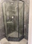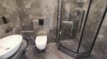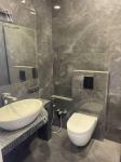 — просторный санузел с душевой кабиной, биде, инсталляцией, раковиной и зеркалом;