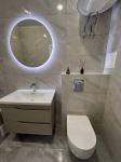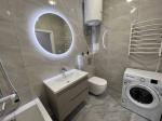 В санузле — современная плитка, сантехника, душ, стиральная машина.