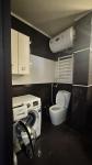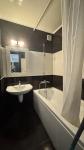 Ванная комната оформлена в актуальном стиле, с качественной сантехникой и аксессуарами.