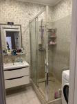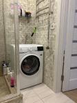 В ванной комнате установлена качественная сантехника а плитка с оригинальным дизайном добавляет интерьеру индивидуальности.