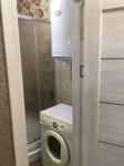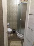 Ванная комната оснащена душевой кабиной, стильной тумбой с раковиной, современной стиральной машиной LG и бойлером, чтобы горячая вода была всегда под рукой.