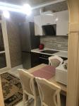 Главная комната совмещена с кухней и наполнена всем, что нужно для жизни: встроенная кухонная мебель, холодильник Whirlpool, духовой шкаф Bosch, варочная поверхность Amica, микроволновка, вытяжка, кондиционер Cooper Hunter, телевизор Philips и высокоскоростной интернет.