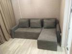Вторая комната оформлена с особым акцентом на уют — раскладной диван, тумба и остекление от пола создают ощущение простора и света.