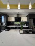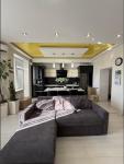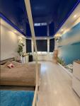 Квартира расположена на 10 и 11 этаже.На первом этаже- просторный холл,раздельный санузел,большая кухня- студия,спальня,кабинет. На втором- холл,спальня,детская комната,санузел с джакузи,тренажерный зал с большими зеркалами,гардеробная комната,кладовая. Теплый пол.