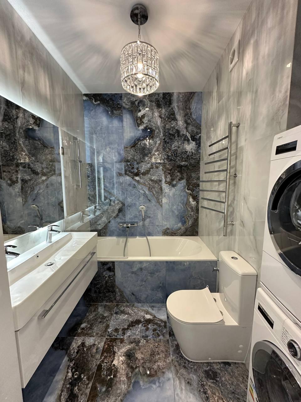 Бытовая техника: плазменный телевизор, варильная панель, духовка электрическая, холодильник, вытяжка, посудомоечная машина, стиральная машина в санузле, сушильная машина, кондиціонер;