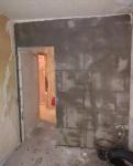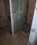 Выполнен демонтаж, в санузле установлены новые 2 стены, подготовлена система под унитаз и развод воды из новых материалов. Выравнены полы в санузле, кухне и прихожей.