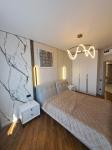 В квартире выполнен качественный ремонт с уникальным авторским дизайном и стильными аксессуарами, установлена современная мебель и техника, комфортно продуманная планировка, из кухни выход на открытый балкон, выделена гардеробная.