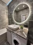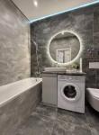 • Совмещенный санузел: ванна, инсталляция, современная плитка.