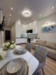 • Кухня-гостиная с полной комплектацией: варочная поверхность, духовка, микроволновая, полноразмерная посудомойка;