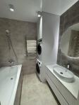 Полностью меблирована под заказ, с вместительными шкафами и гардеробной. В квартире есть вся современная техника: встроенный холодильник, морозильная камера, духовой шкаф, СВЧ, ПММ, фильтр воды, 3 телевизора, 2 кондиционера, стиральная и сушильная машины, бойлер на 100 литров.