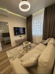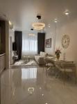 Планировка: кухня-студия, две отдельные спальни, гардеробная, балкон. Квартира после свежего дизайнерского ремонта, полностью меблирована и оборудована всей необходимой техникой.