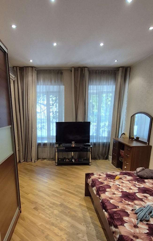 Квартира расположена на 1 этаже 2 этажного дома, имеет свой изолированный вход. В квартире был выполнен качественный ремонт и установлена хорошая мебель и техника. В квартире 2 санузла, зал, столовая, две спальни, кухня. Окна зала и одной из спален выходят на фасад дома, что дает возможность использовать квартиру в качестве нежилого помещения, например под офис нотариуса, адвоката и т.д. В квартире установлен двухконтурный газовый котел, два кондиционера.