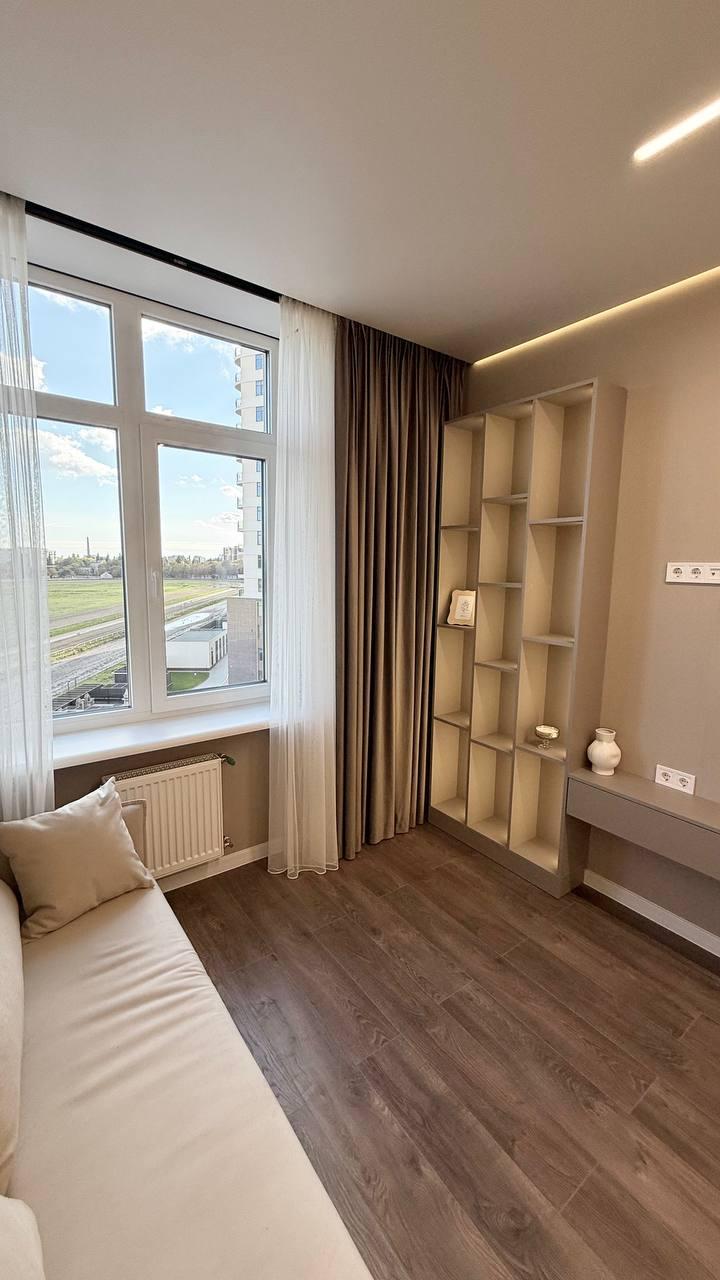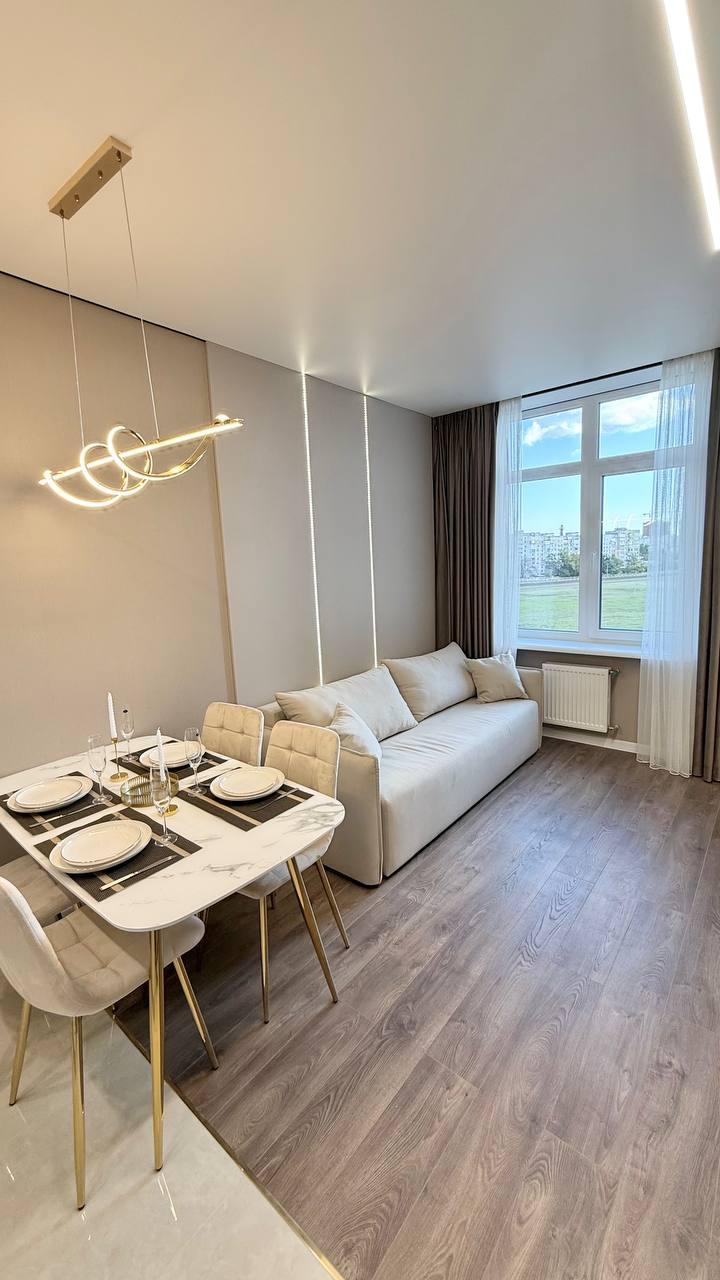 Продается стильная с дизайнерским ремонтом и полностью укомплектованная 1-ком. квартира (евродвушка) на 6 этаже престижного жилого комплекса «60-я Жемчужина» — от застройщика KADORR Group.