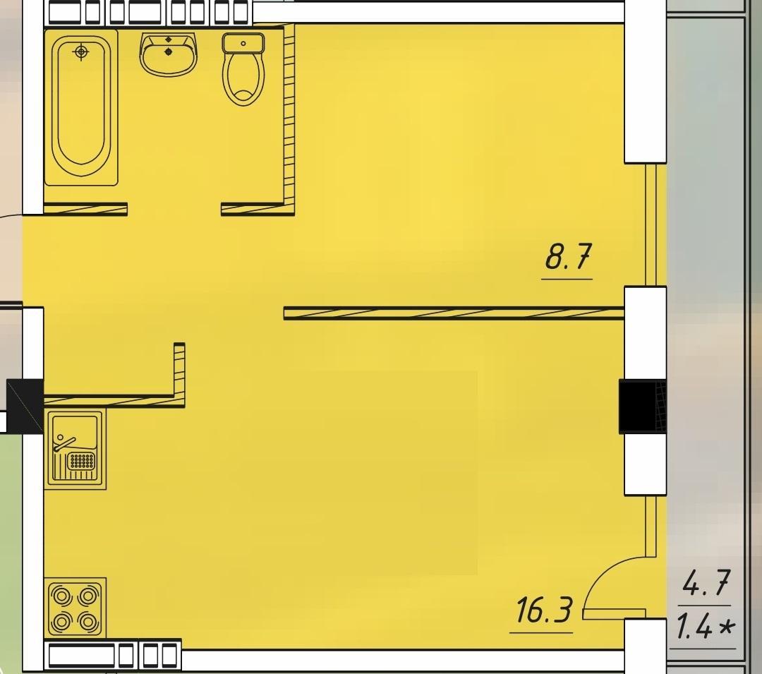 Площадь квартиры — 34,1 м2.