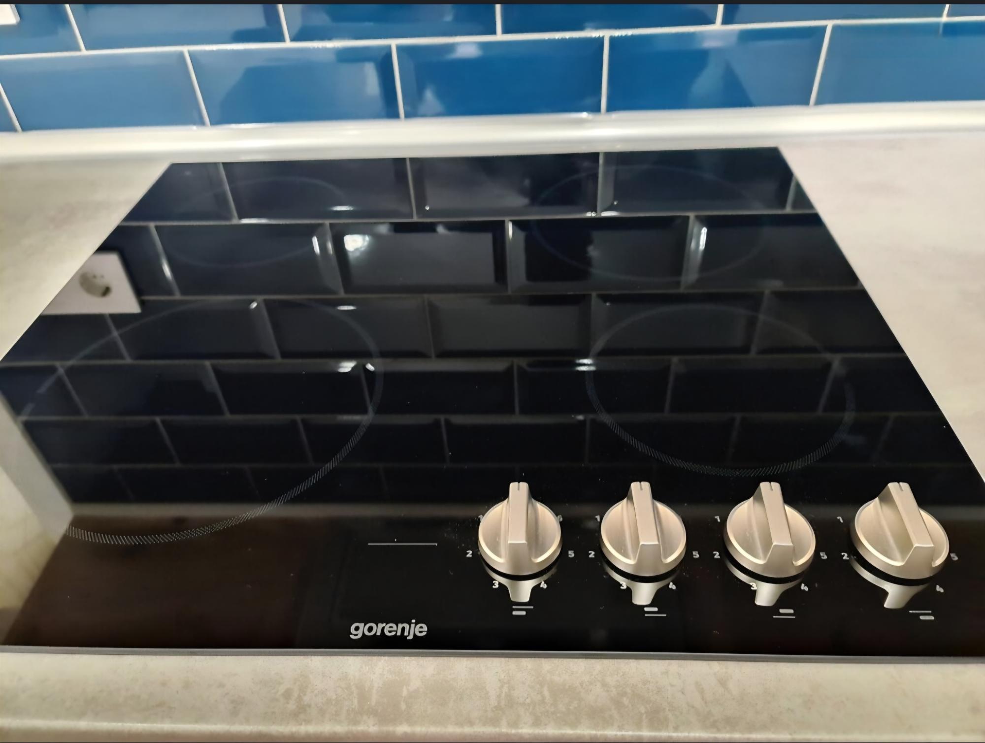 Бытовая техника: варильная панель, электроплита, холодильник, вытяжка, стиральная машина в санузле;