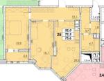 Квартира площадью 75,6 м2 расположена на 15-м этаже нового 16-этажного кирпичного дома от надежного застройщика «Стикон».
