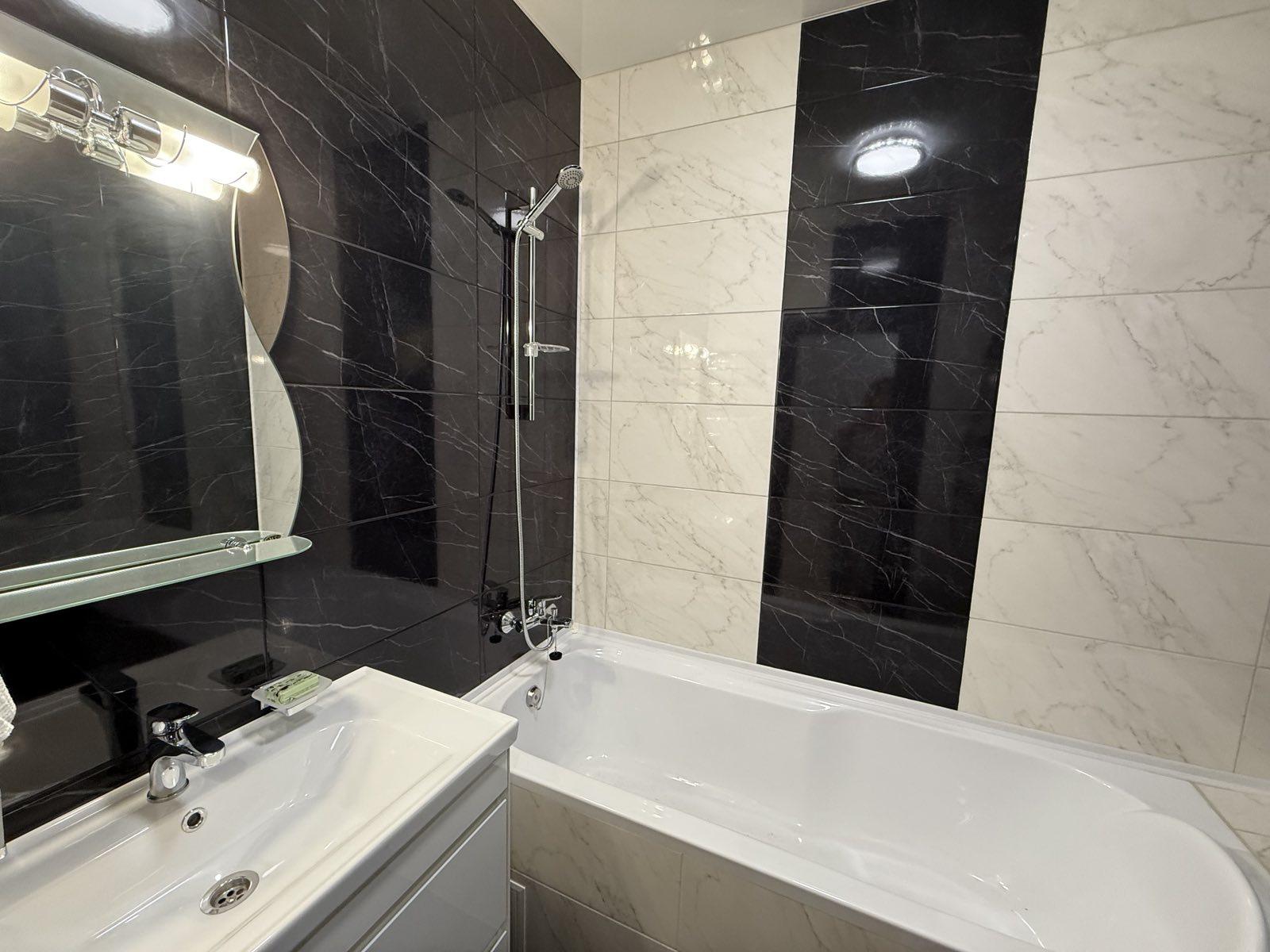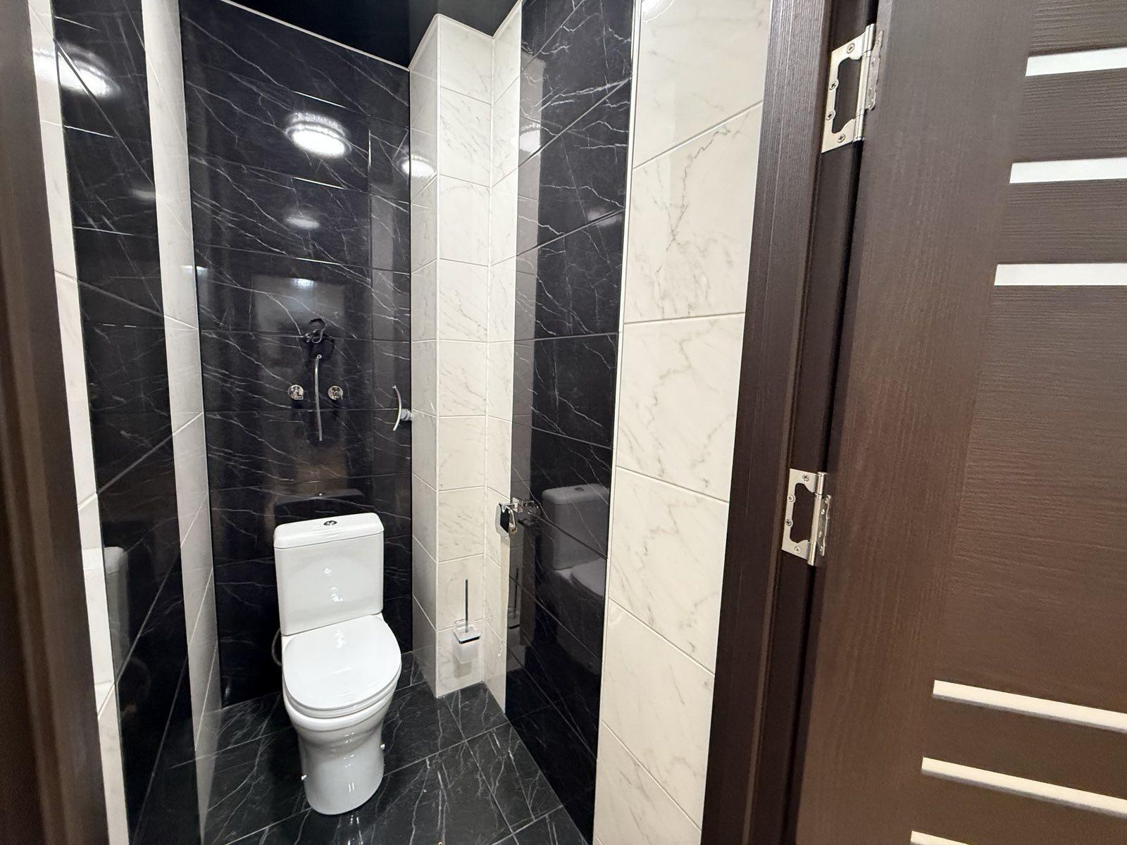 Раздельный санузел с новейшим ремонтом подчеркивает удобство планировки и комфорт для проживания семьи.