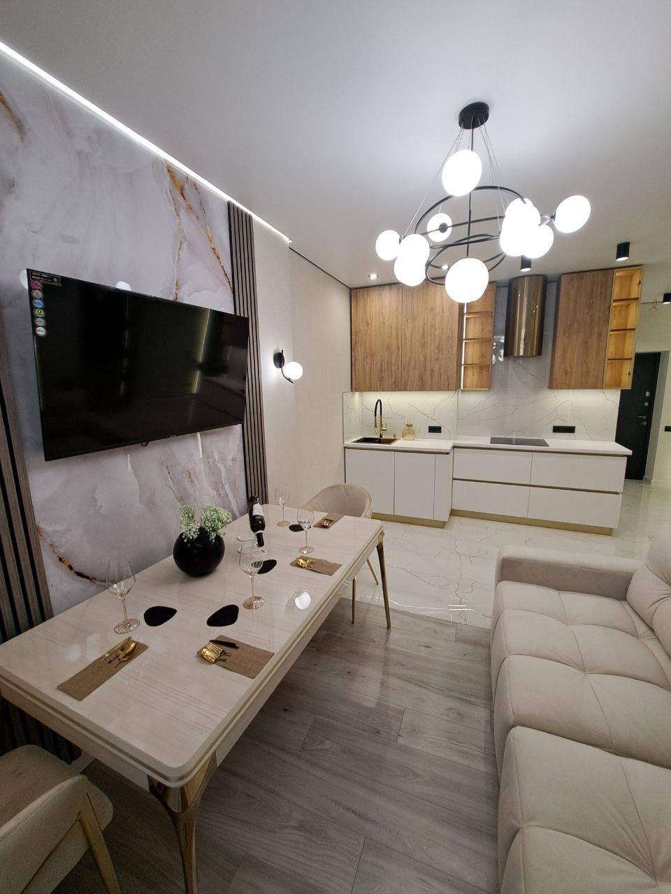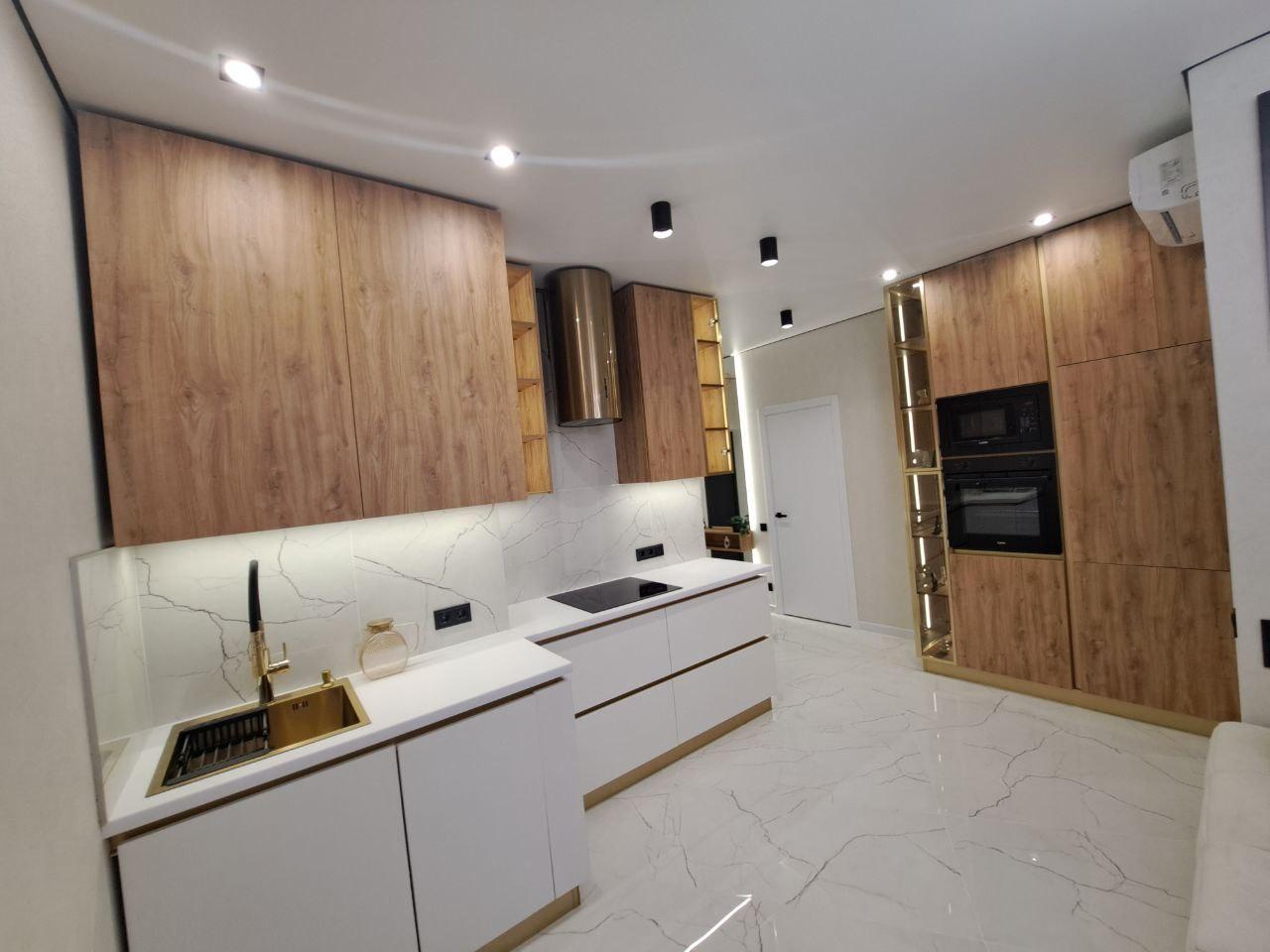 Бытовая техника: плазменный телевизор, варильная панель, микроволновка, духовка электрическая, холодильник, вытяжка, посудомоечная машина, стиральная машина в санузле, кондиціонер;
