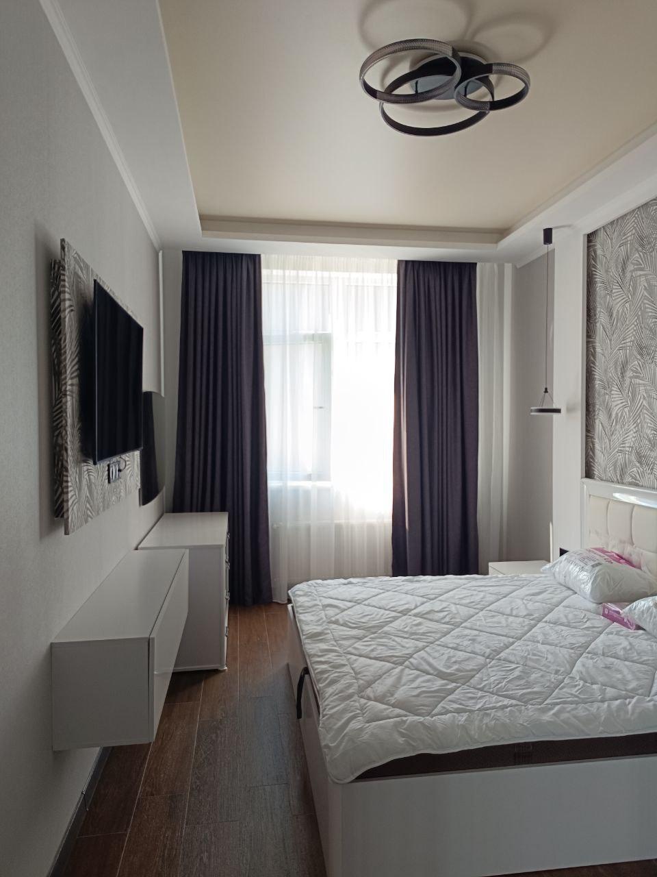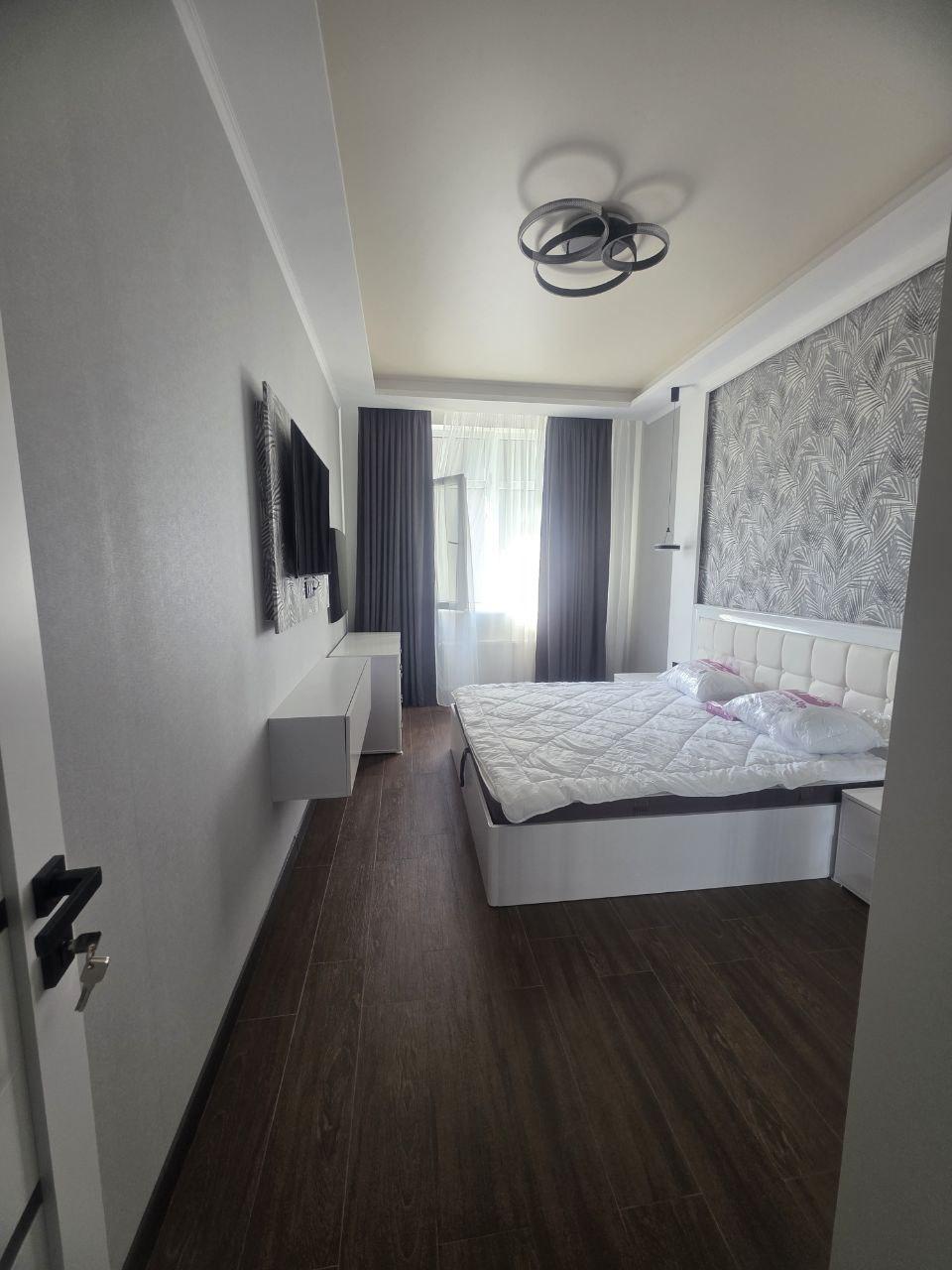 Квартира укомплектована мебелью, техникой и посудой.