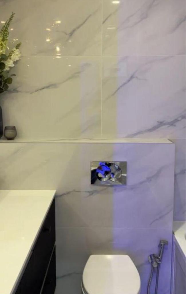 Кухня и санузлы с кварцитовой столешницей.