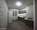 На кухне установлена кухонная мебель.