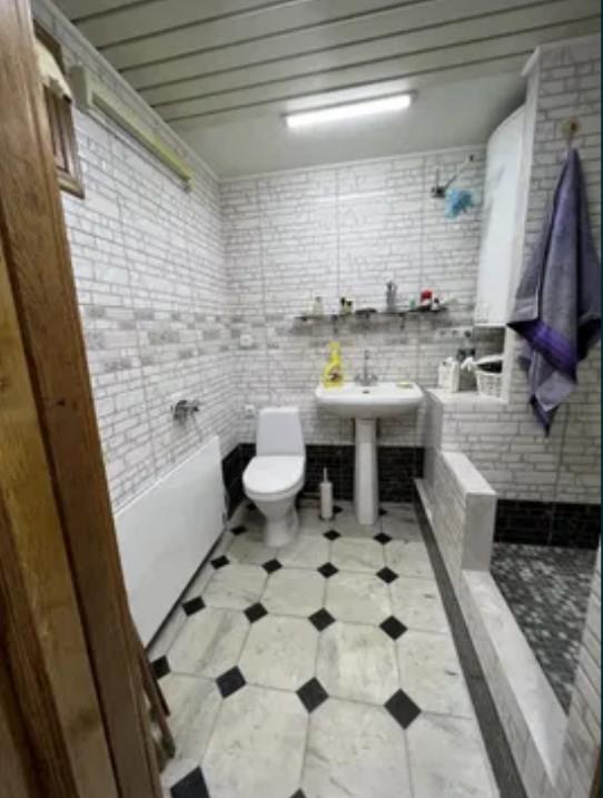 В ванной комнате установлены бойлер, стиральная машина, конвектор отопления и вытяжной вентилятор.