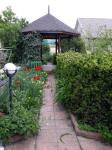 Сад, беседка с прудом. Построены подземные ливне отводы, летний душ, мангал. Установлена система наружного полива всего участка.